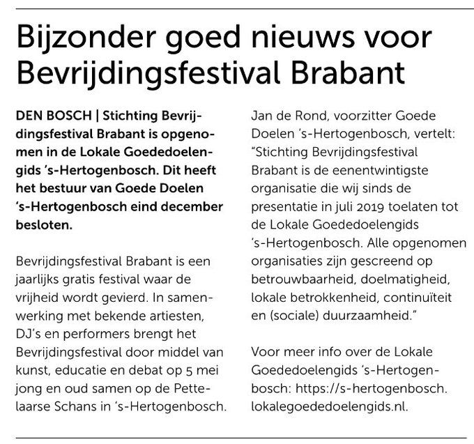 Bevrijdingsfestival opgenomen in Lokale Goededoelengids 's-Hertogenbosch