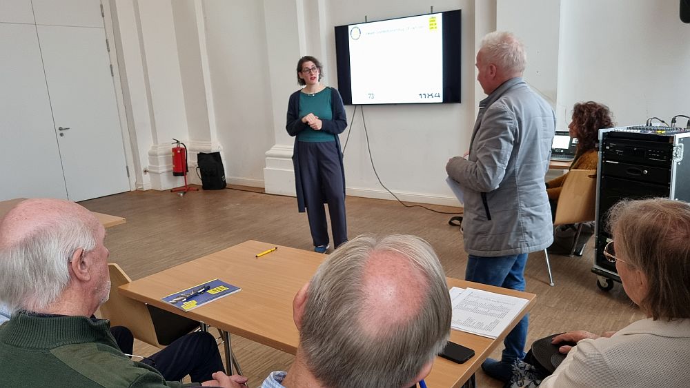 Notaris Yvonne Vleeshouwers lichtte toe wat zij zoal in haar dagelijkse praktijk meemaakt, welke overwegingen mensen hebben om te doneren en na te laten en waarom zij begonnen is met het sociaal notariaat in de Bartjes wijk.